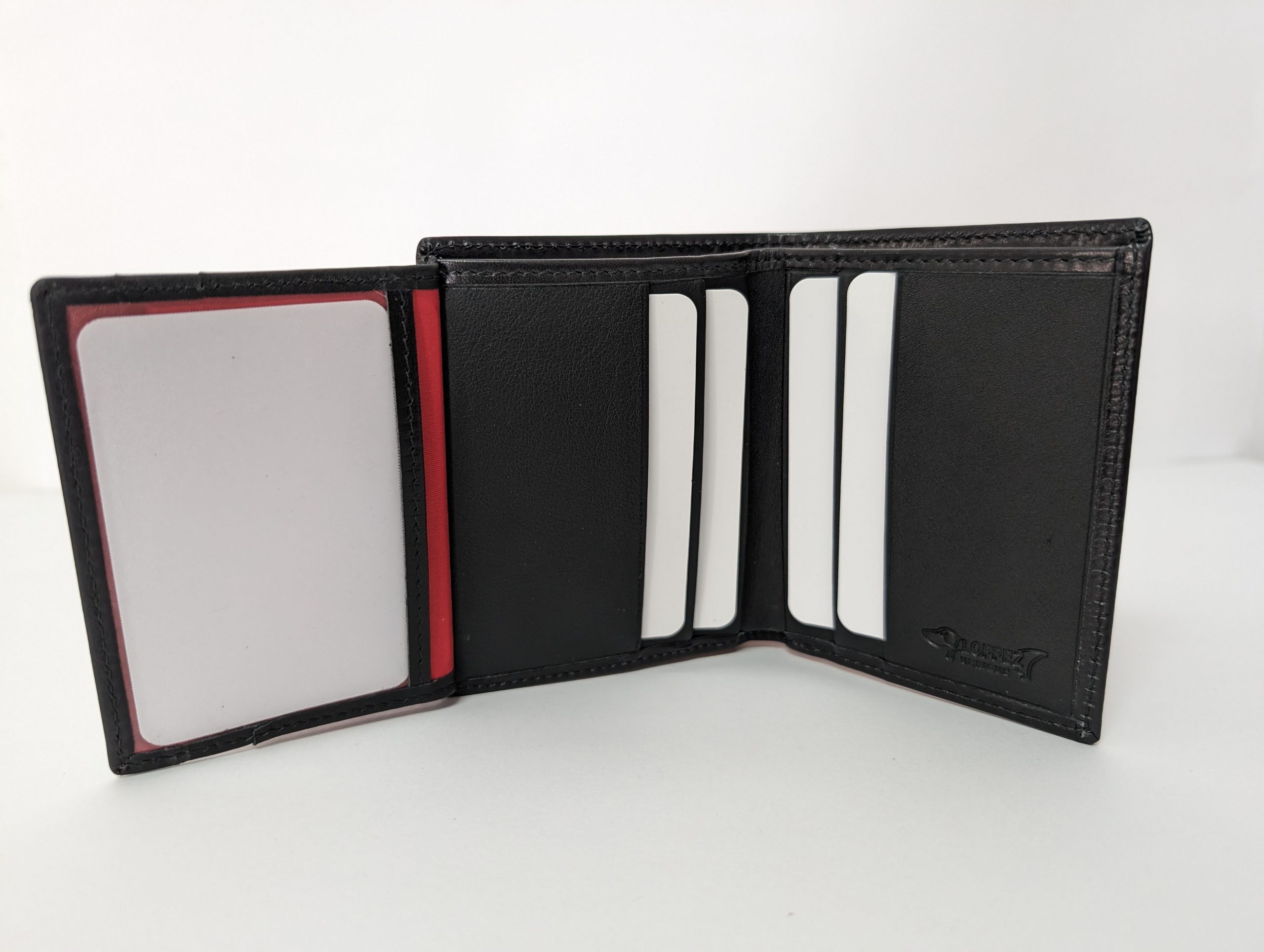 Cartera y portatarjetas Fabricada en piel de Ternera . Cartera con 9 ranuras para tarjetas de crédito, compartimento para billetes.